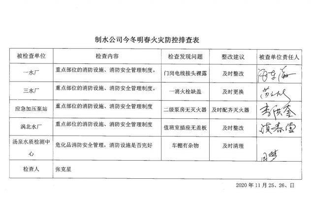 市制水公司2020年今冬明春火灾防控排查表