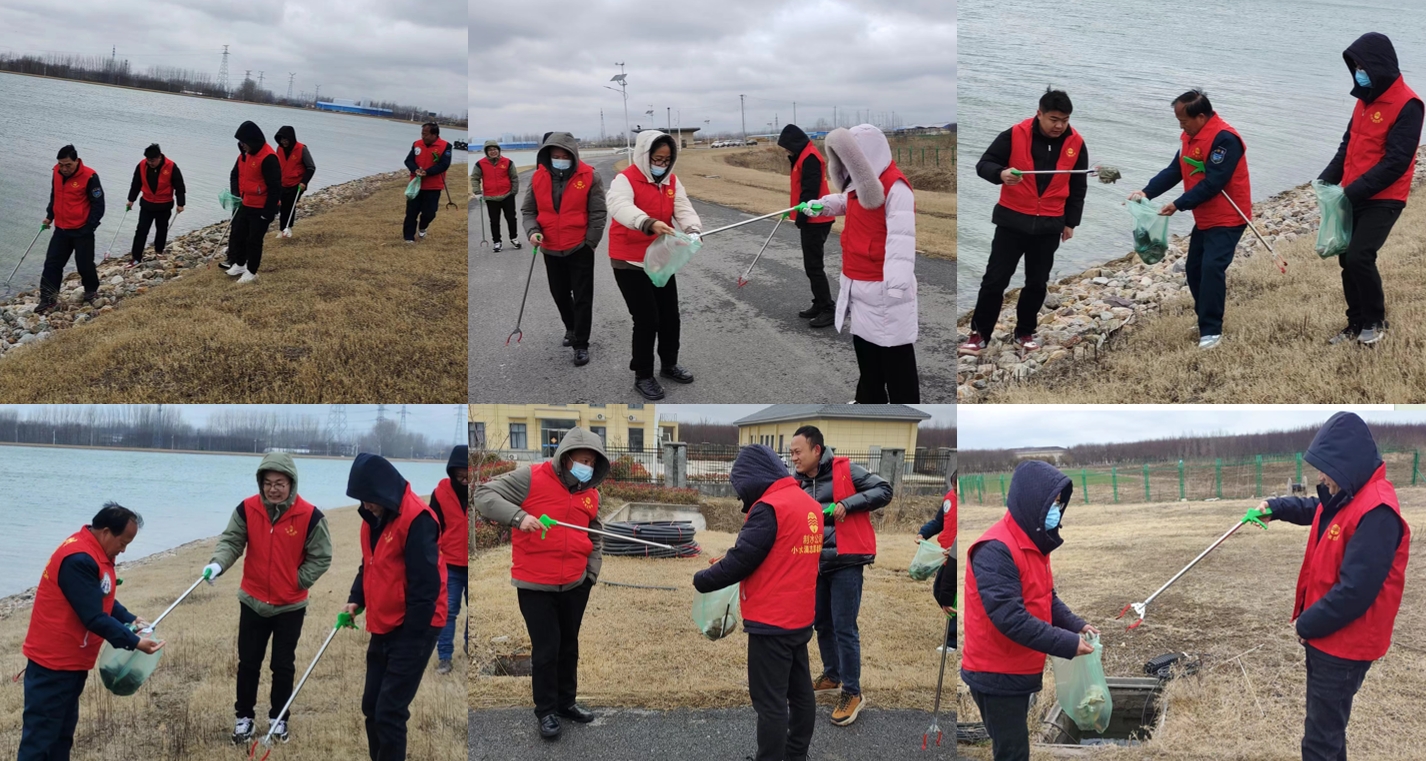 宣传学习结束后,小水滴志愿者服务队在城南调蓄水库,开展“湿地与人类的福祉 人与湿地的生命交织”为主题的水源地保护活动。志愿者们身穿红马甲,手拿捡拾夹,不畏冬日严寒,以饱满的热情在水源地进行垃圾捡拾,用实际行动勾勒出“人与湿地 生命交织”的画卷。